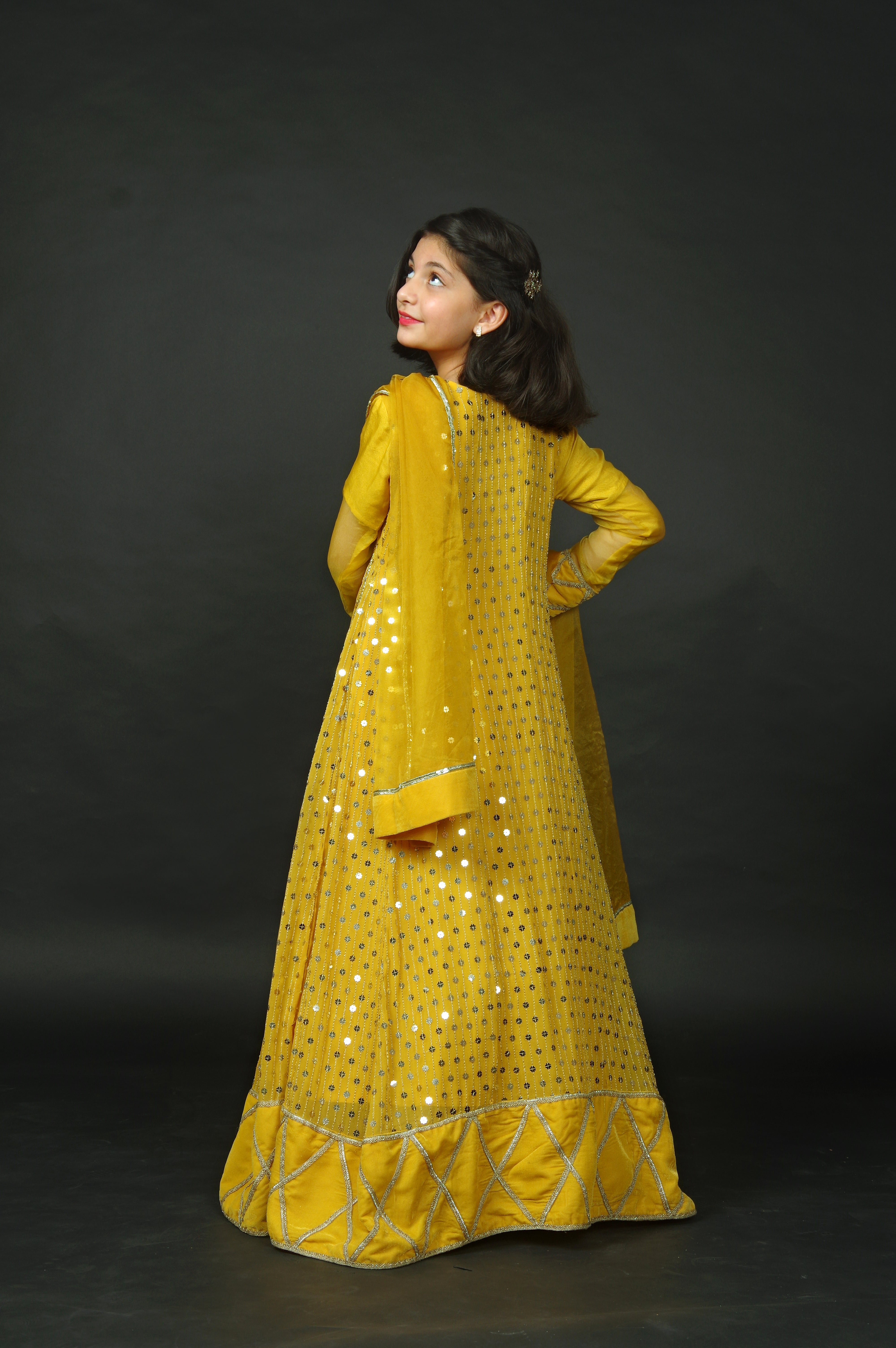 Radiate grace and tradition with this stunning Mustard Yellow full length Maxi, designed to embody timeless elegance and royal charm. Perfectly tailored for festive occasions and cultural celebrations, this ensemble makes an unforgettable statement.